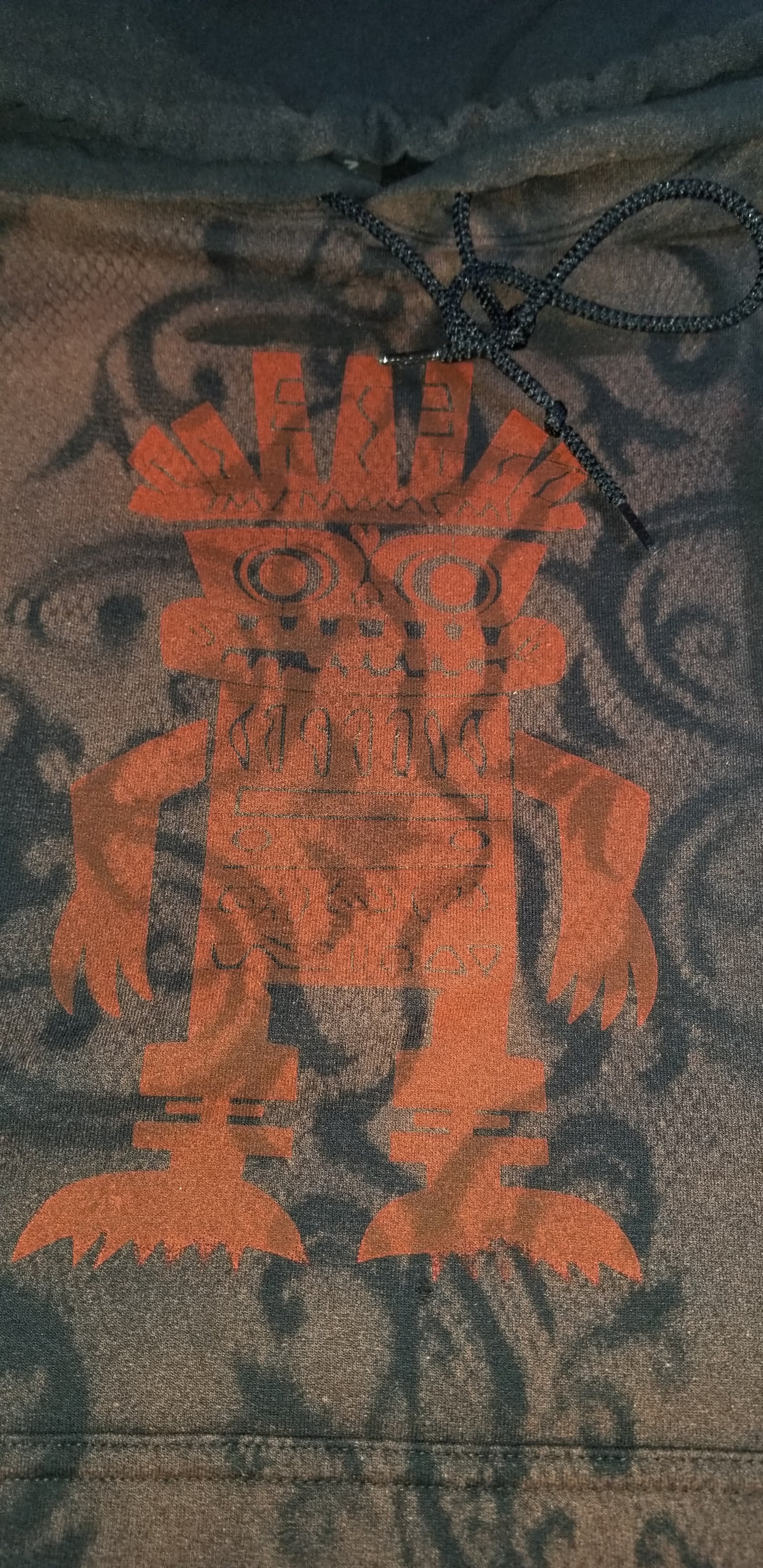 BLOOD CODE draws from ancient symbols, tribal circuitry, and underground energy - a signal from a forgotten civilization, reborn through Black Kat. The deep rust signal markings, protection glyphs ,and warrior coding-while the smoky ash-burn wash tells the story of the time ,erosion and evolution.