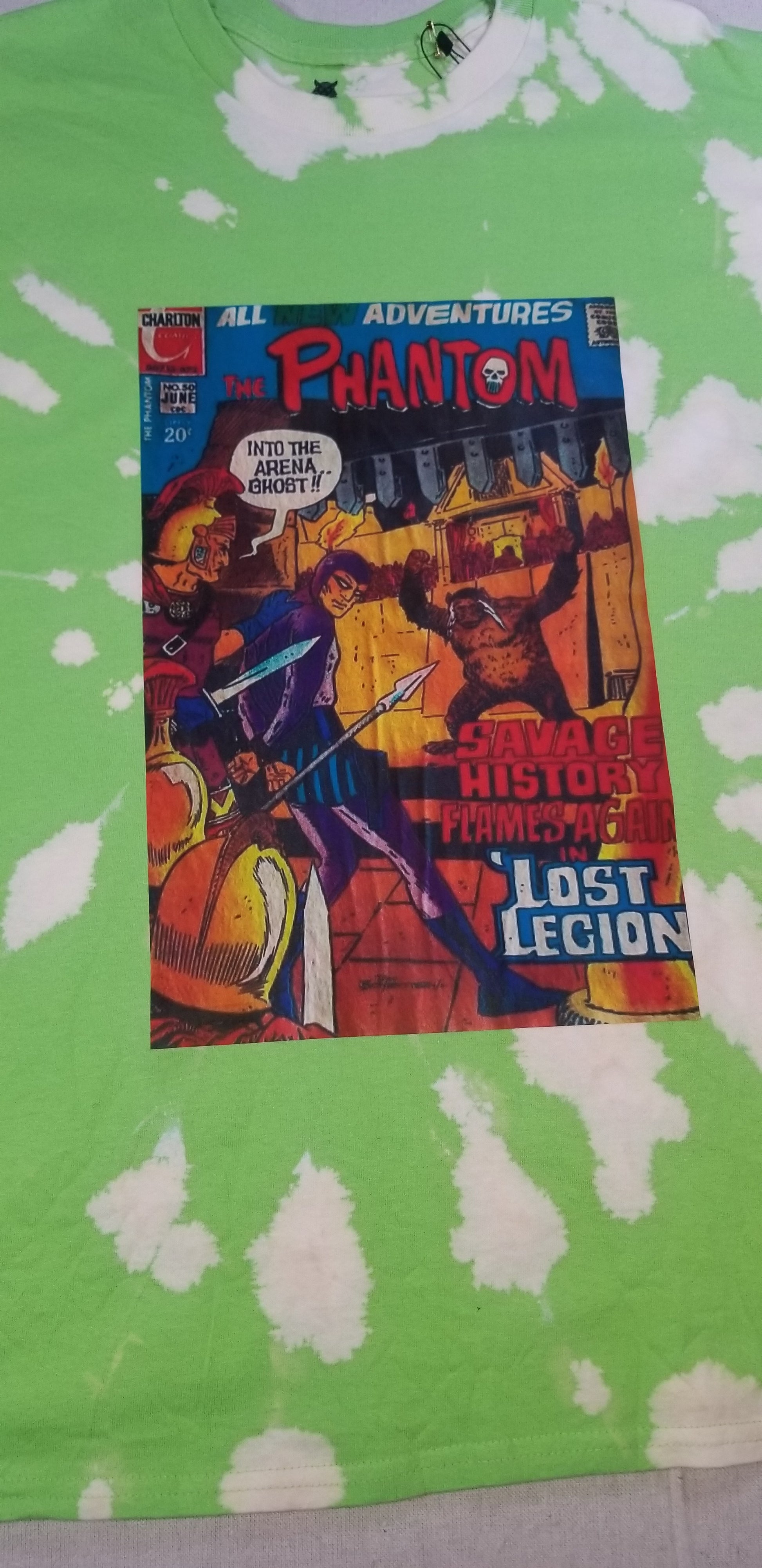 The PHANTOM TEE is that vintage comic book tee with a retro vibe over tie/dye pattern .This tee reminds you of a time when get up and going to your local comic book & variety store to get your latest edition of your favorite comic-a time so long ago but this tee will be a constant reminder.